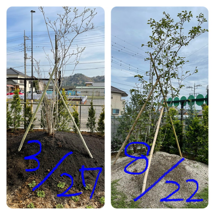 3月に植えてもらったモクレンがしっかり根付いて青々とした葉っぱが出てきました。