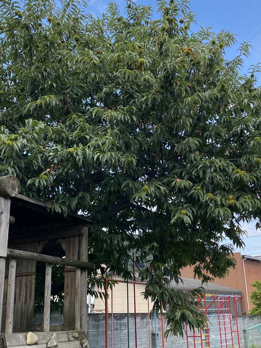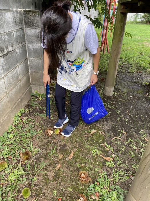 裏園庭に栗の実が落ちていると聞いて、様子を見に行くと・・・