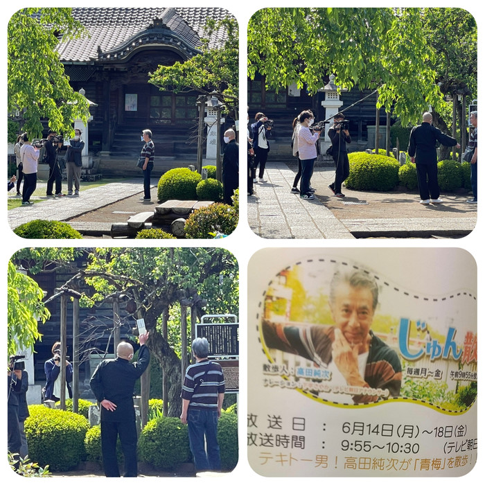 青梅市の名前の由来になった、金剛寺の梅の木について園長先生と高田純次さんがお話をされている様子が映し出されるかな??