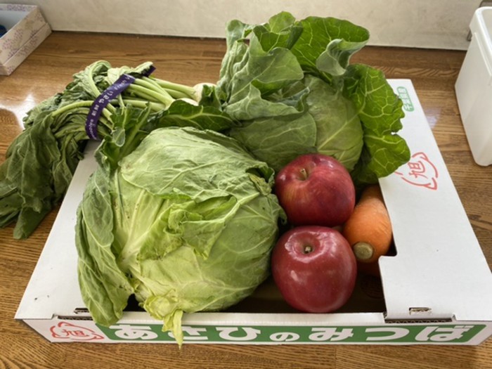 園児のお母さんが「連休中は誰もお野菜持ってこないだろうから」と段ボールいっぱいのお野菜を抱えて来てくれてました。