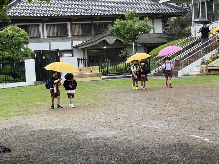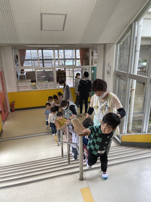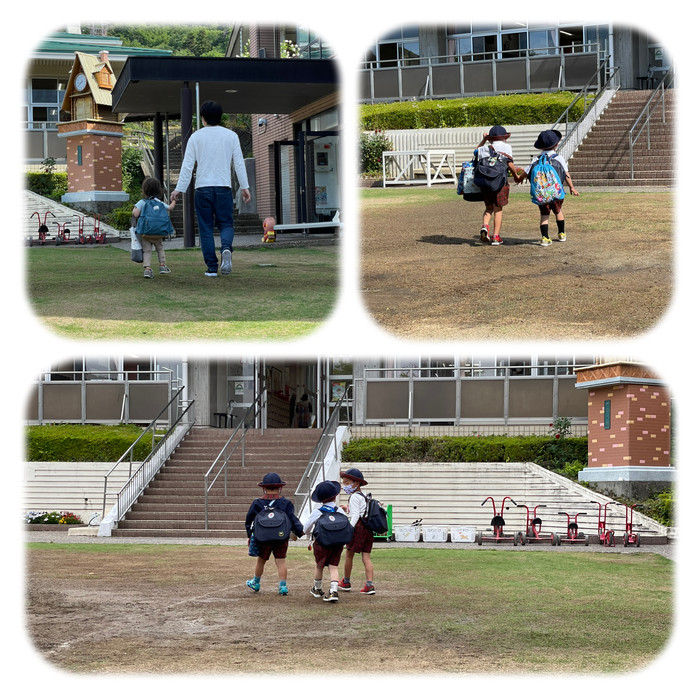 おうちえんでの動画をご覧になるとわかるように、階段が多く広?い本園でも足取りよくしっかりと歩いては、他の学年のお兄さんお姉さんを見ながら「幼稚園児」としての意識を高めています。