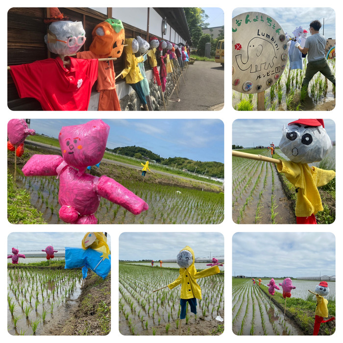 吉田シェフが運んでくれたカカシさんたち、無事に田んぼに着いたようです。