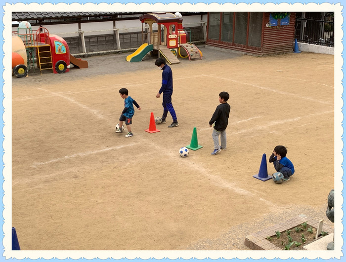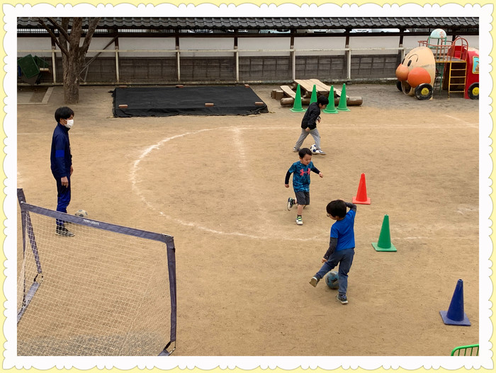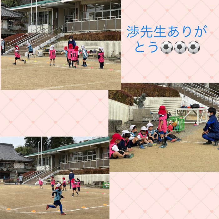 期間中は各クラスの園児と先生をはじめ、カンガルー、卒園児、保護者の方々も見学に来てくれて、今日はサッカークラブの渉先生も見学に来てくれました??