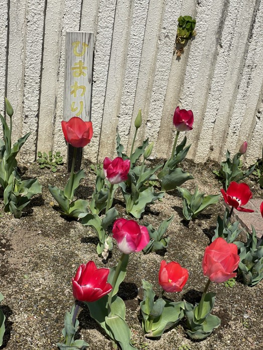 でもチューリップはみんな揃って開花し、まるで園児たちを拍手で迎えているかの様ですよ ?
