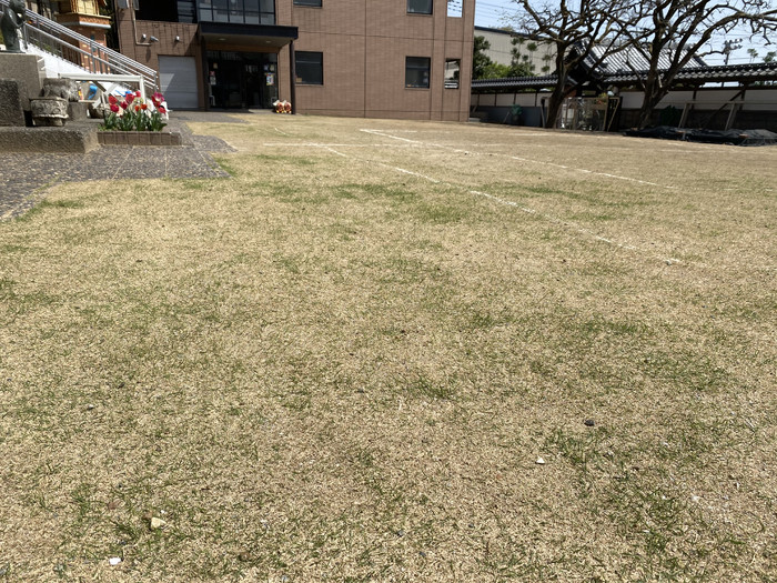 四恩幼稚園の芝生は冬になるに連れて白くなり、また夏にかけて緑になっていく高麗芝というものです。