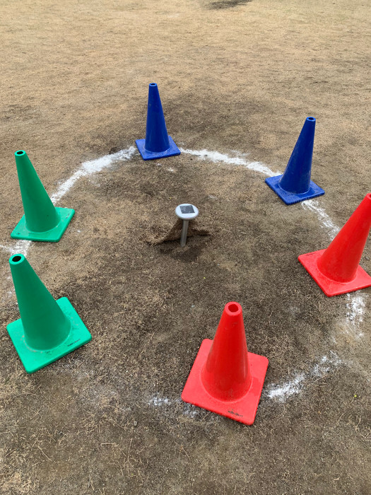 3月下旬頃から園庭にモグラが現れるようになり、芝生に何ヵ所も穴を開けてしまうため、モグラを追い払うべく、市販の撃退器を設置しました。