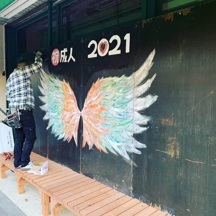 年中組。背景は運転手さんたちの力を借りました。どうぞのいすの木やロバは大江さんのフリーハンド スゴすぎます