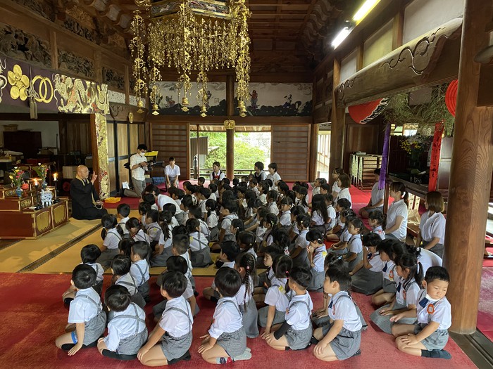 園庭朝礼のあと、先生たちと一緒にテクテク歩いて境内を通り、金剛寺の本堂へ行ってみました。