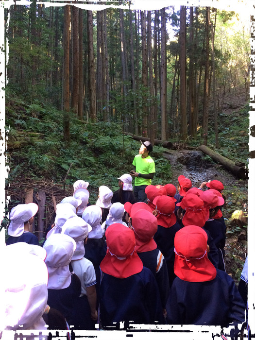 森の講師の中島さんに連れられて森の奥へ‥