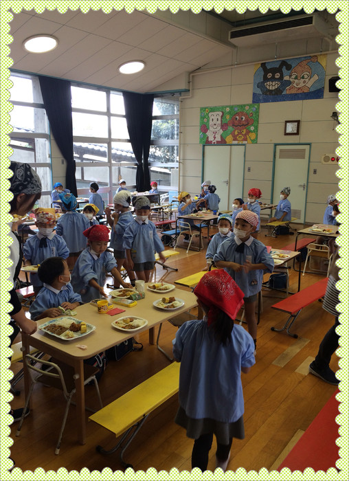 年長さんは張り切って配膳のお手伝いをしてくれました?