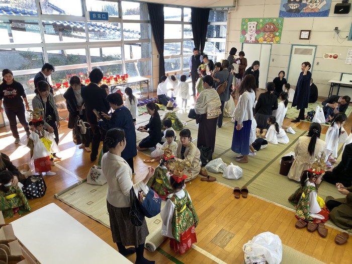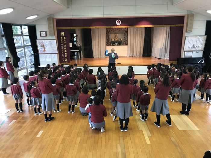 園長先生から、七五三ではなんでお祝いをするのか、昔のお話を子供たちはよーく聞きました。