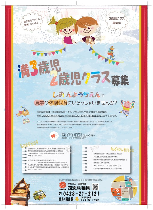 令和2年度 2歳児クラス・満3歳児クラス入園募集中です。 2020/1/4(土)