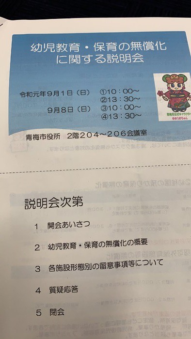 青梅市役所主催の無償化説明会 2019/9/1(日)