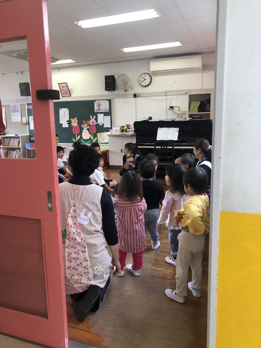 保育の流れは、スムーズに進められた。歌遊びやペープサート、手遊びなど何回か繰り返しやっていたので、回を増すごとに覚え、楽しめるようになっているように思う。