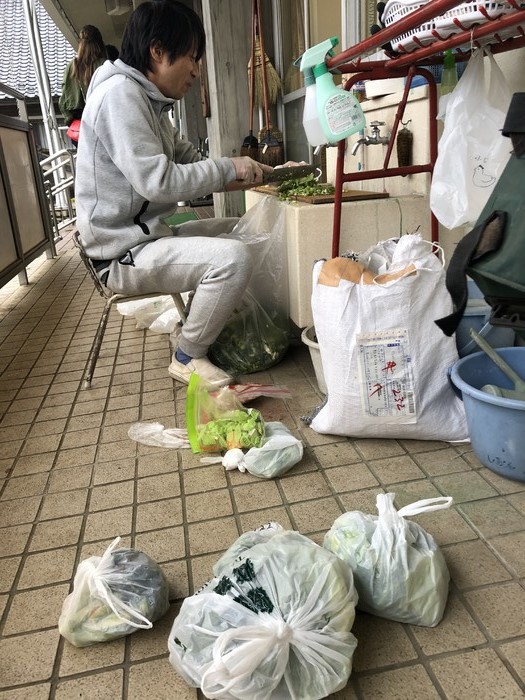 心優しい大江さんはみんなが持って来てくれたお野菜を、みんなが帰った後に、ニワトリひとくちサイズに刻んでくれているのです。