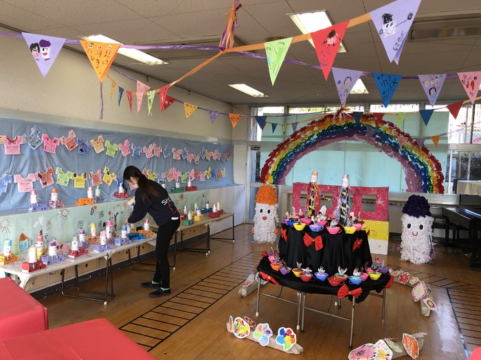 スモックを着るときは自慢げに見せてくれます。裏表を返すことができる子も畳むことができる子もいます。