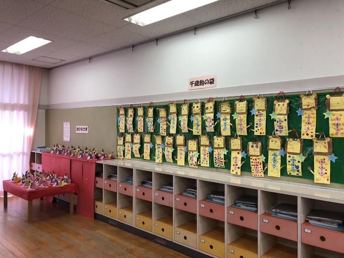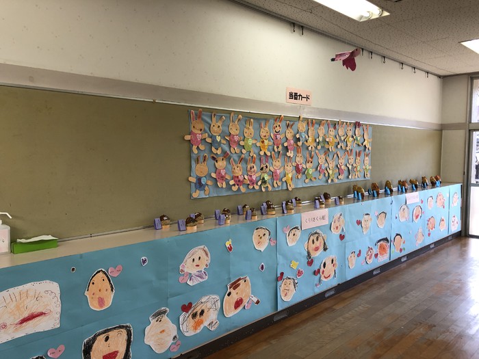 二歳児さんたちは私服だけどお母さん方が自分で着脱しやすい服やくつを選んで着せて下さっているので、自分で上手に脱ぎ履きができるようになりましたね。