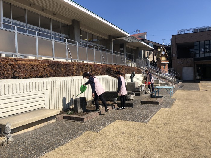 四恩幼稚園では、自分で身だしなみを整えることができるように教えています。